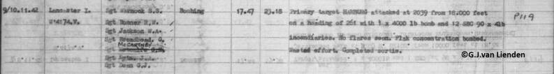 Hier onder uittreksels uit de Operations Record Books met de operationele vluchten van George James Dean.