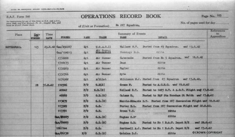 Op 18 augustus 1942, werd hij overgeplaatst naar 207 Squadron.