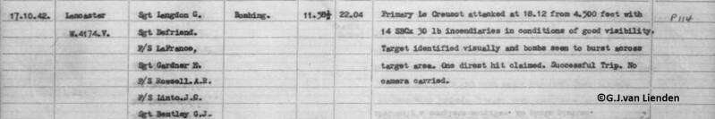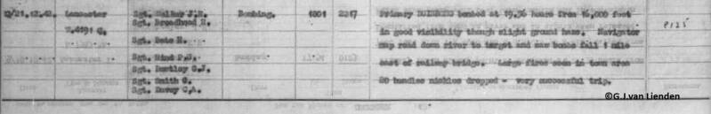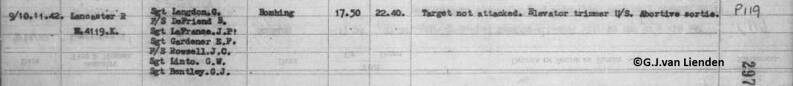 Hier onder uittreksels uit de Operations Record Books met de operationele vluchten van Gordon Joseph Bentley