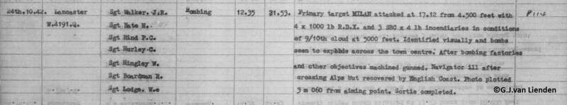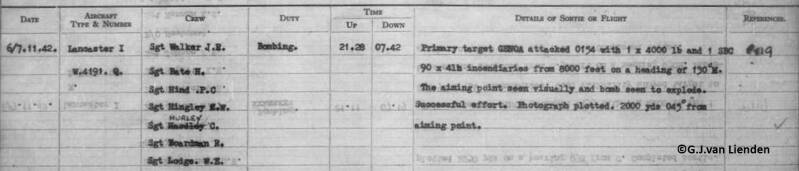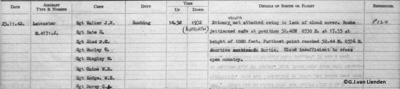 His first operational flight was on September 1, 1942. His last, fatal, operational flight on December 21, 1942. In total he was on 20 operations, see the list at the left.