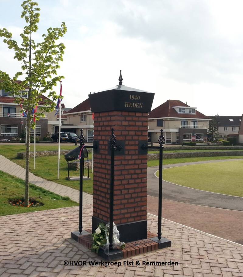 In 2015 werd op initiatief van de HVOR Werkgroep Elst & Remmerden een gedenkteken gebouwd ter herinnering aan de oorlogsslachtoffers van Elst. Op 25 april werd het gedenkteken door burgemeester van der Pas samen met schoolkinderen onthuld.