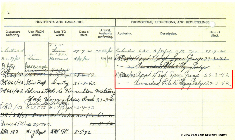 Op 27 maart 1942 is opleiding 44 in Dunnville voltooid en krijgt Douglas Robert Bannerman zijn "Wings".